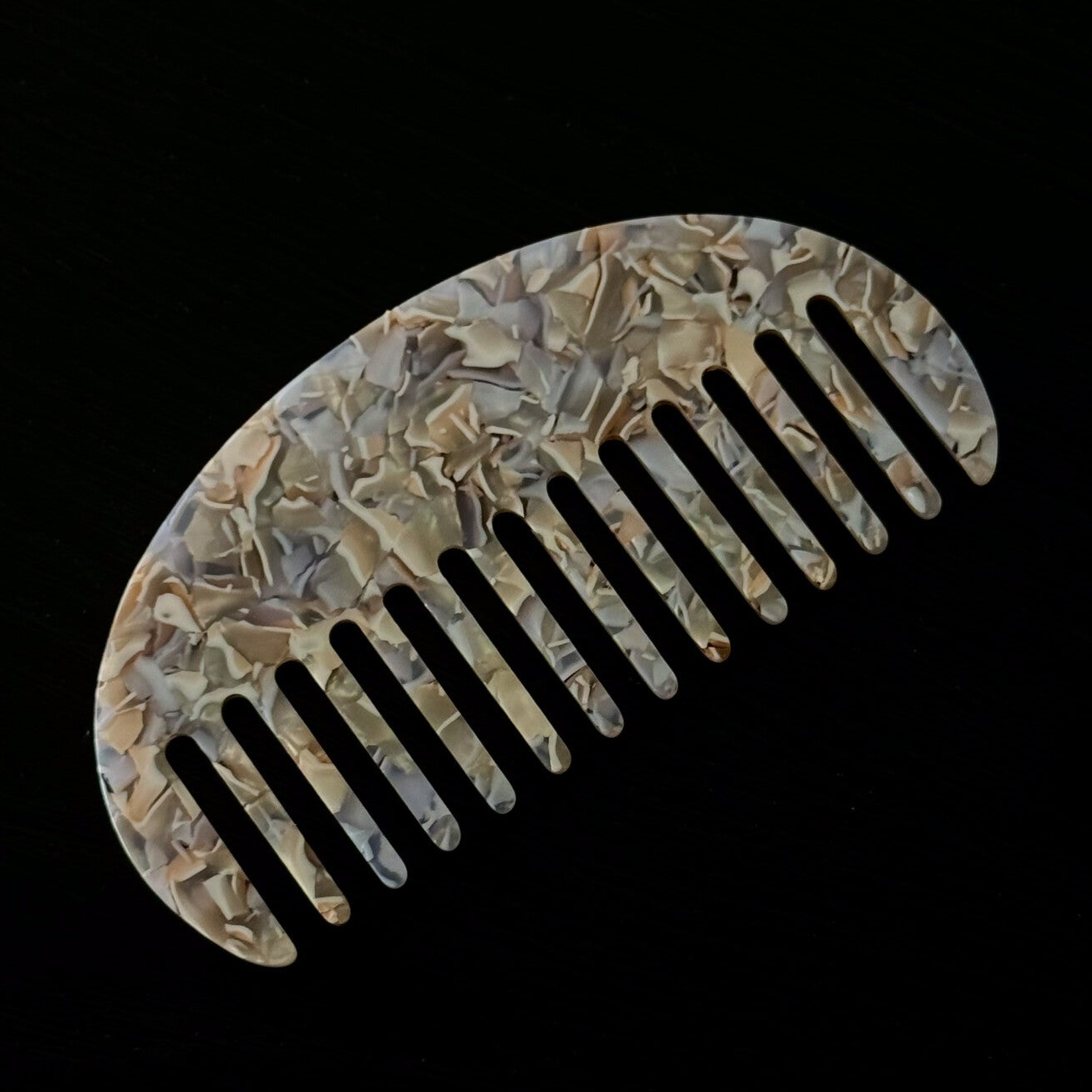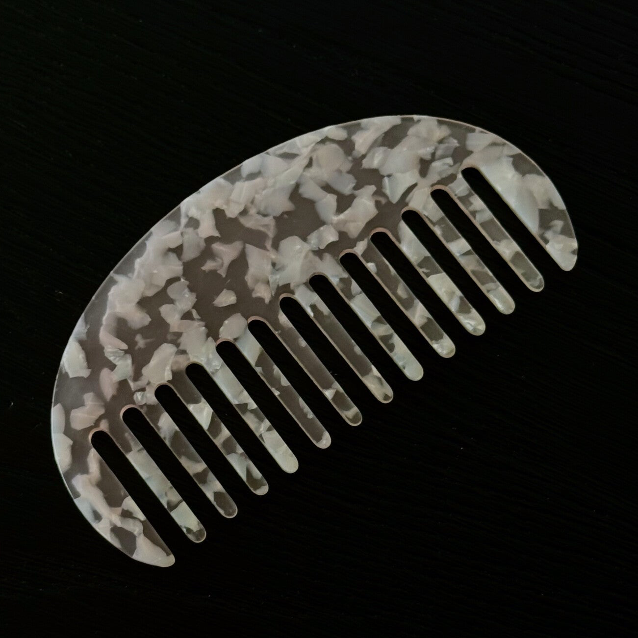Op zoek naar een kam die zowel stijlvol als functioneel is? Onze halfronde kam met een uniek marmerpatroon is jouw perfecte haaraccessoire!